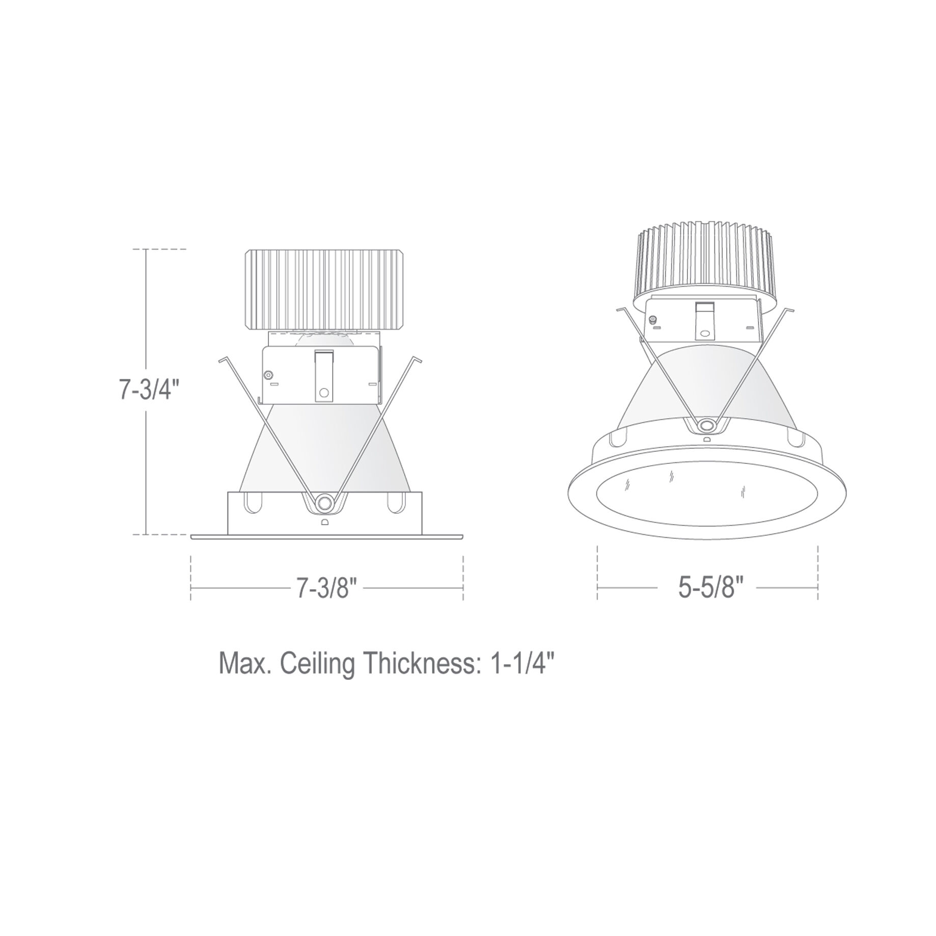 Architectural-grade recessed downlight reflector for medium to high ceilings in commercial and architectural installations. Reflector designed for minimal glare from lamp without sacrificing lumen output.