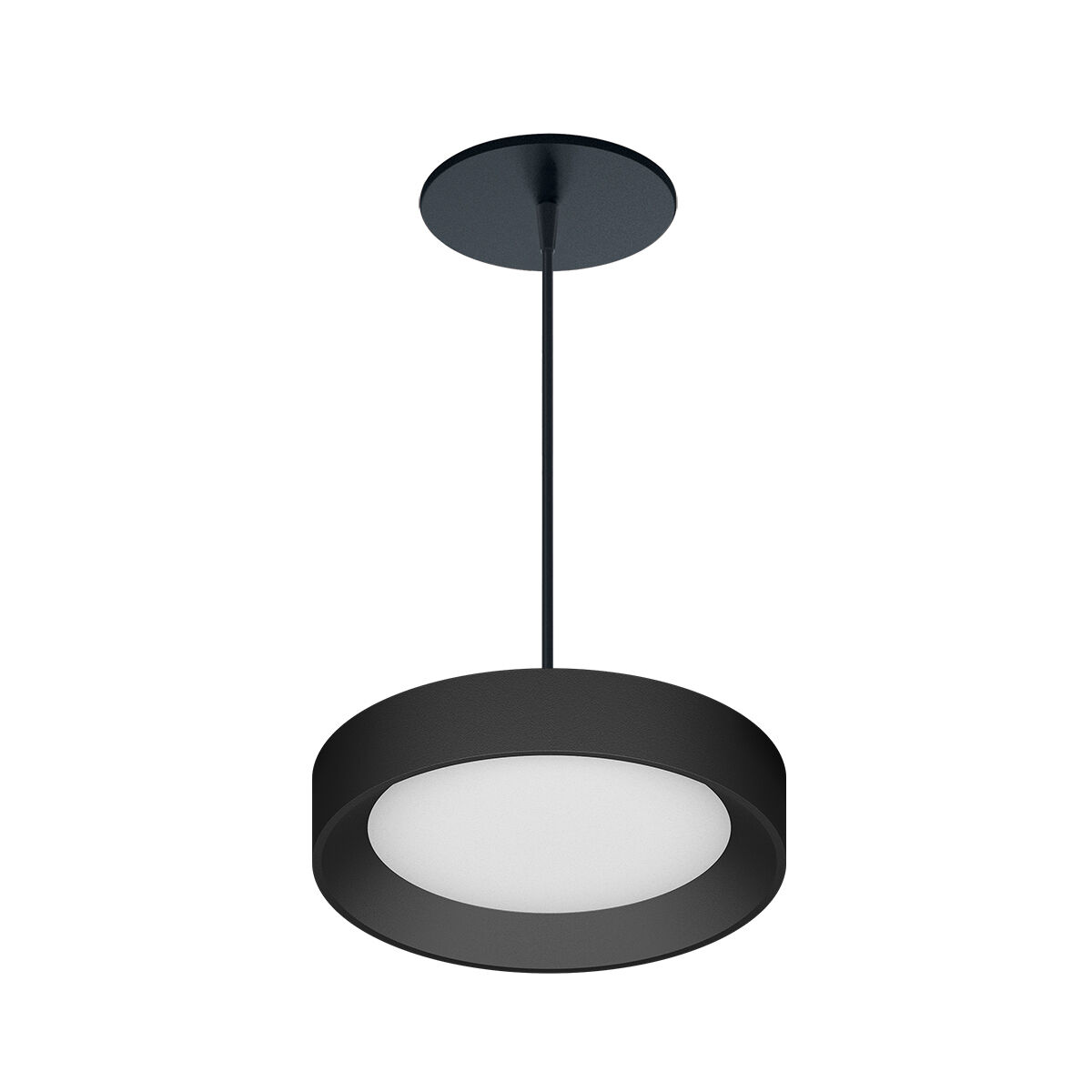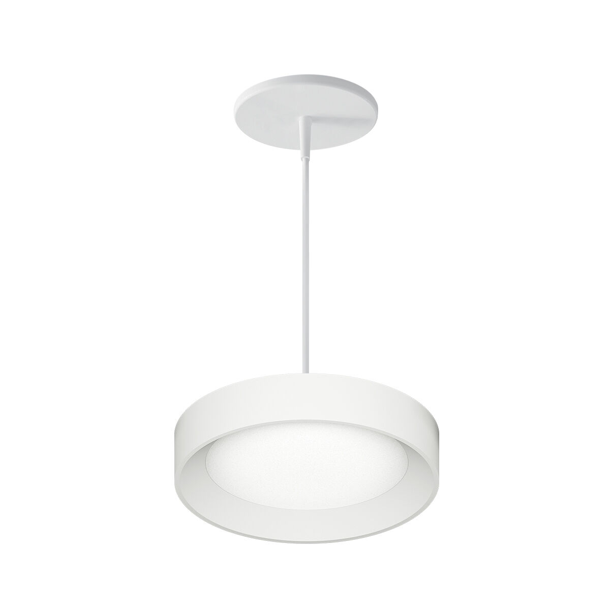 The LumenPad Round LED Downlight Pendant Mount with Bevel Trim ring floats with elegance in contemporary architectural applications, a unique combination of innovative, elegantly minimalist design and high-quality LED performance. The luminaire is perfect for Retrofit, New Construction and Remodel Applications in low to medium height ceilings. Super thin profile is unobtrusive in design and has low glare. Lens is a Polycarbonate Frosted White Lens.