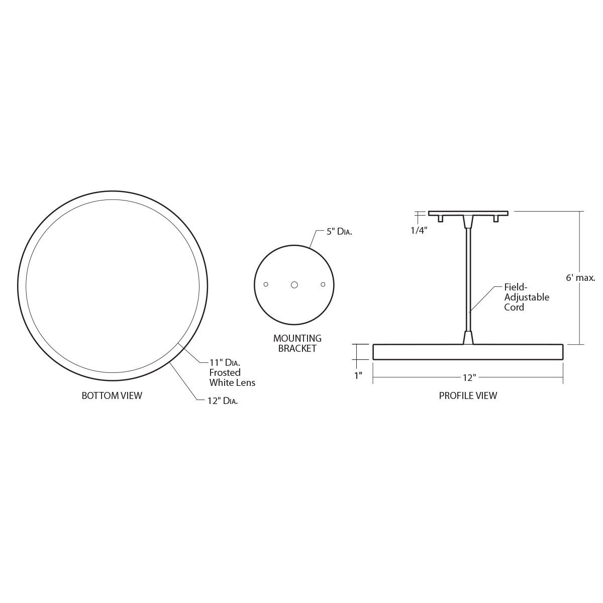 LCMPD12RP : 12" LumenPad Round LED Downlight Pendant Mount 2000LM (22W)