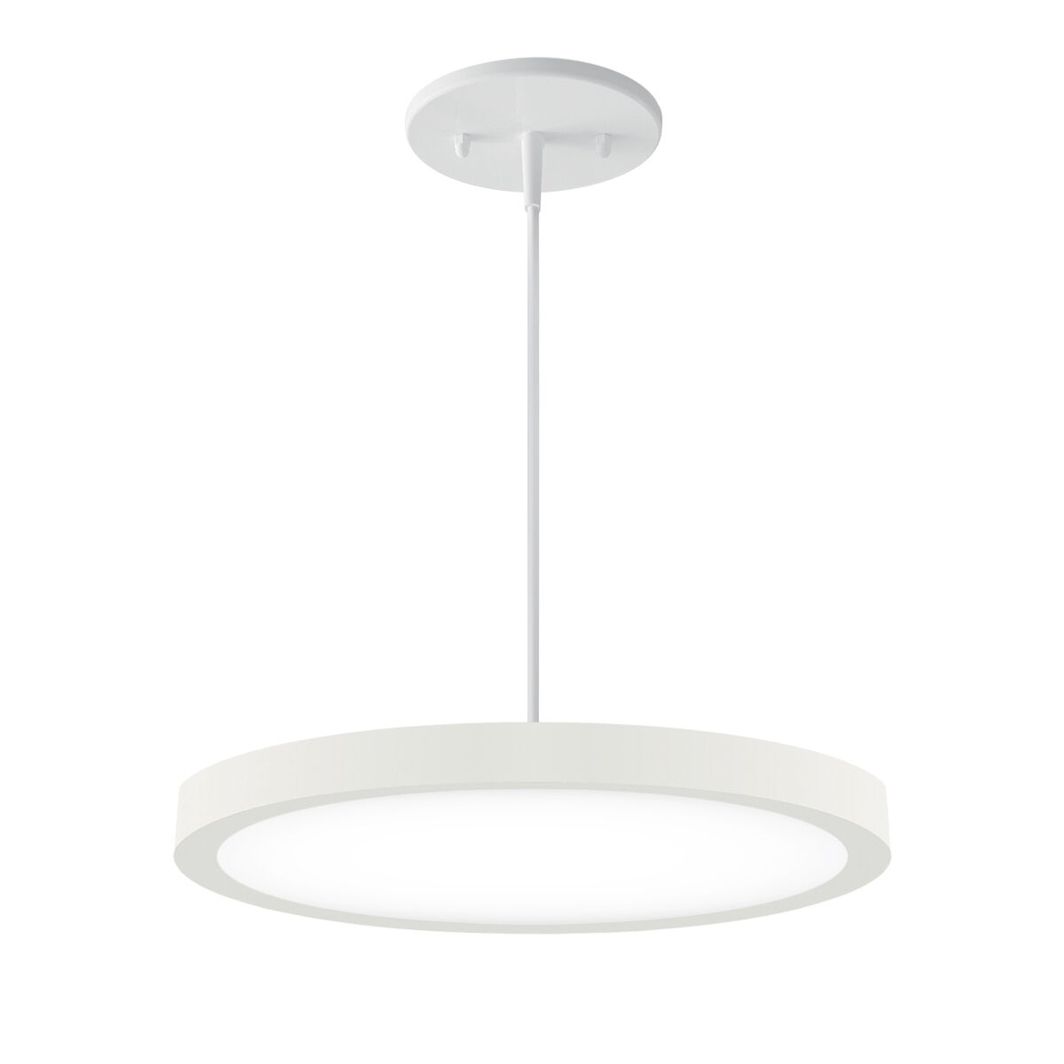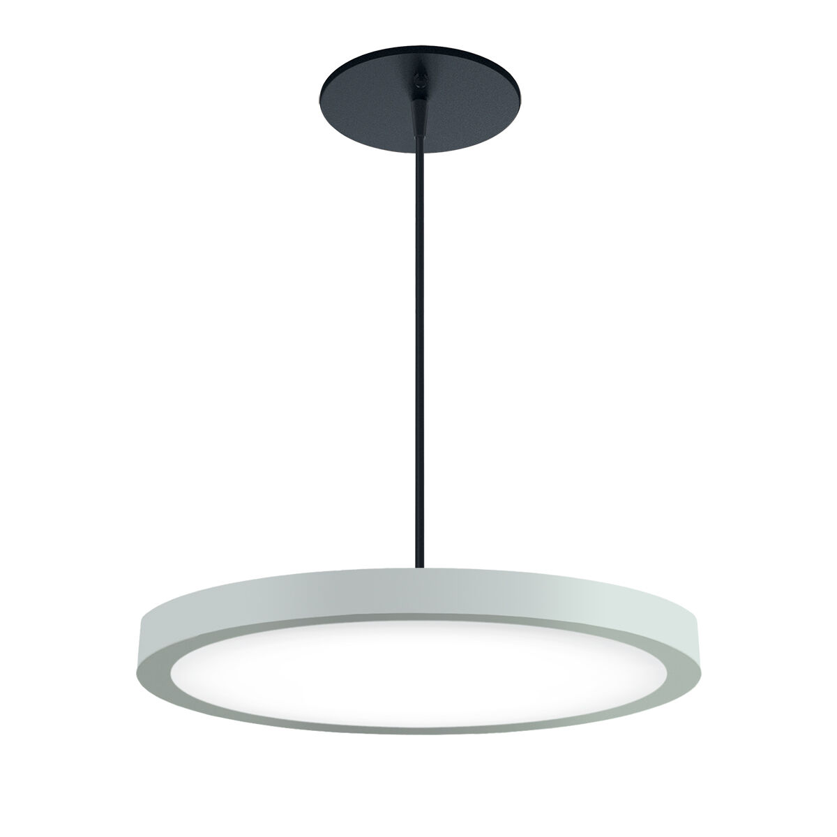 The 12" LumenPad Round LED Downlight Pendant Mount floats with elegance in contemporary architectural applications, a unique combination of innovative, elegantly minimalist design and high-quality LED performance. The luminaire is perfect for Retrofit, New Construction and Remodel Applications in low to medium height ceilings. Super thin profile is unobtrusive in design and has low glare. Lens is a Polycarbonate Frosted White Lens.