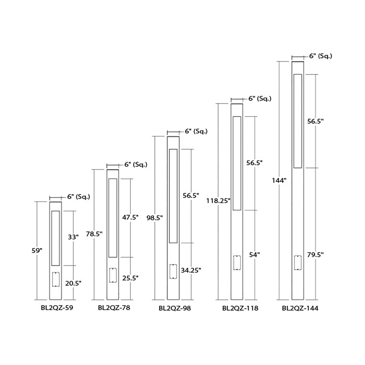 BL2QZ : LumenPole Square Bollard & Column 6" Open Frame - 59", 78", 98", 118" and 144" Height, 1600lm - 5000lm (20W - 90W)