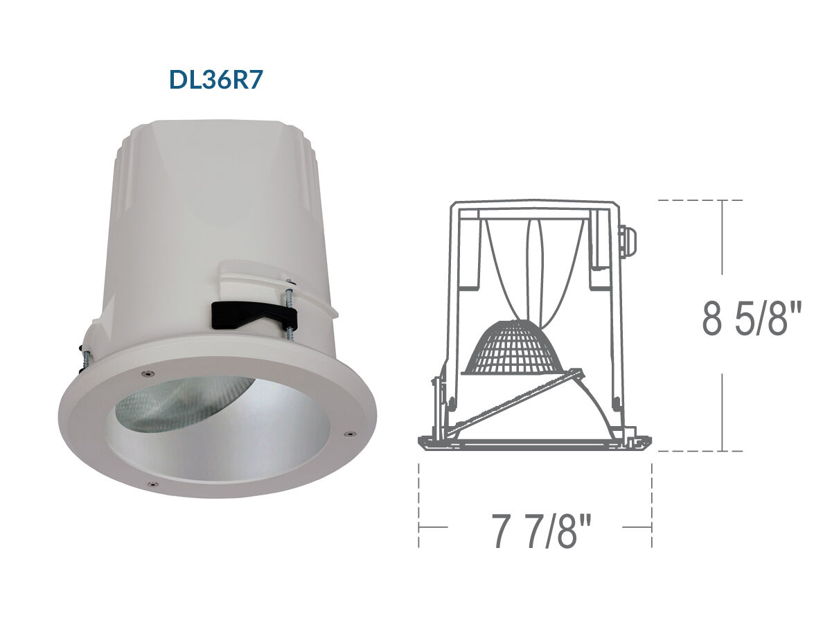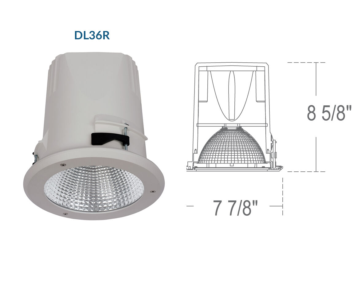 Architectural-grade recessed mount LED downlight housing for medium to high ceilings combines energy efficiency with powerful lumen output. Perfect for atriums, churches, lobbies, and airports that have high ceilings.