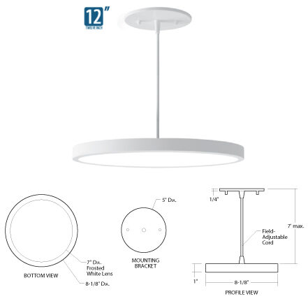 The LumenPad Round LED Downlight Pendant Mount floats with elegance in contemporary architectural applications, a unique combination of innovative, elegantly minimalist design and high-quality LED performance. The luminaire is perfect for Retrofit, New Construction and Remodel Applications in low to medium height ceilings. Super thin profile is unobtrusive in design and has low glare. Lens is a Polycarbonate Frosted White Lens.