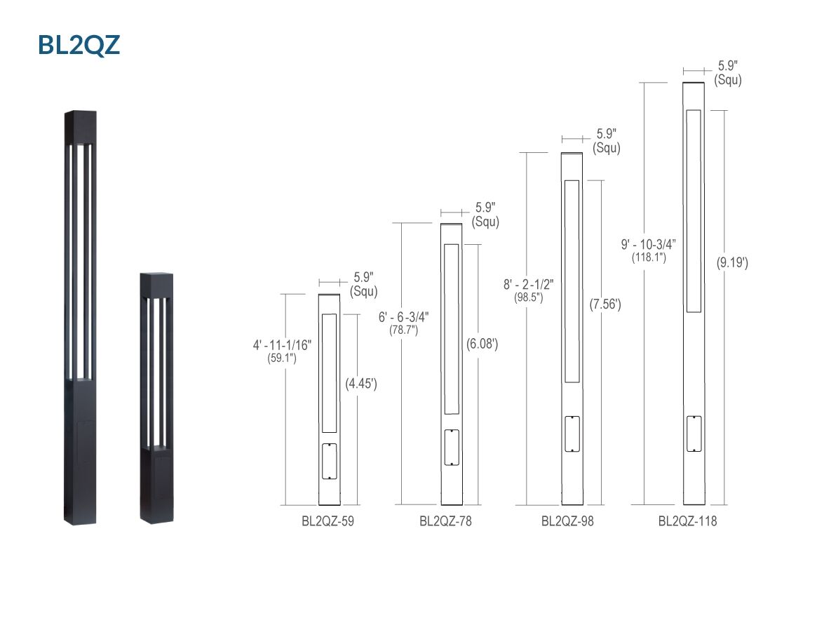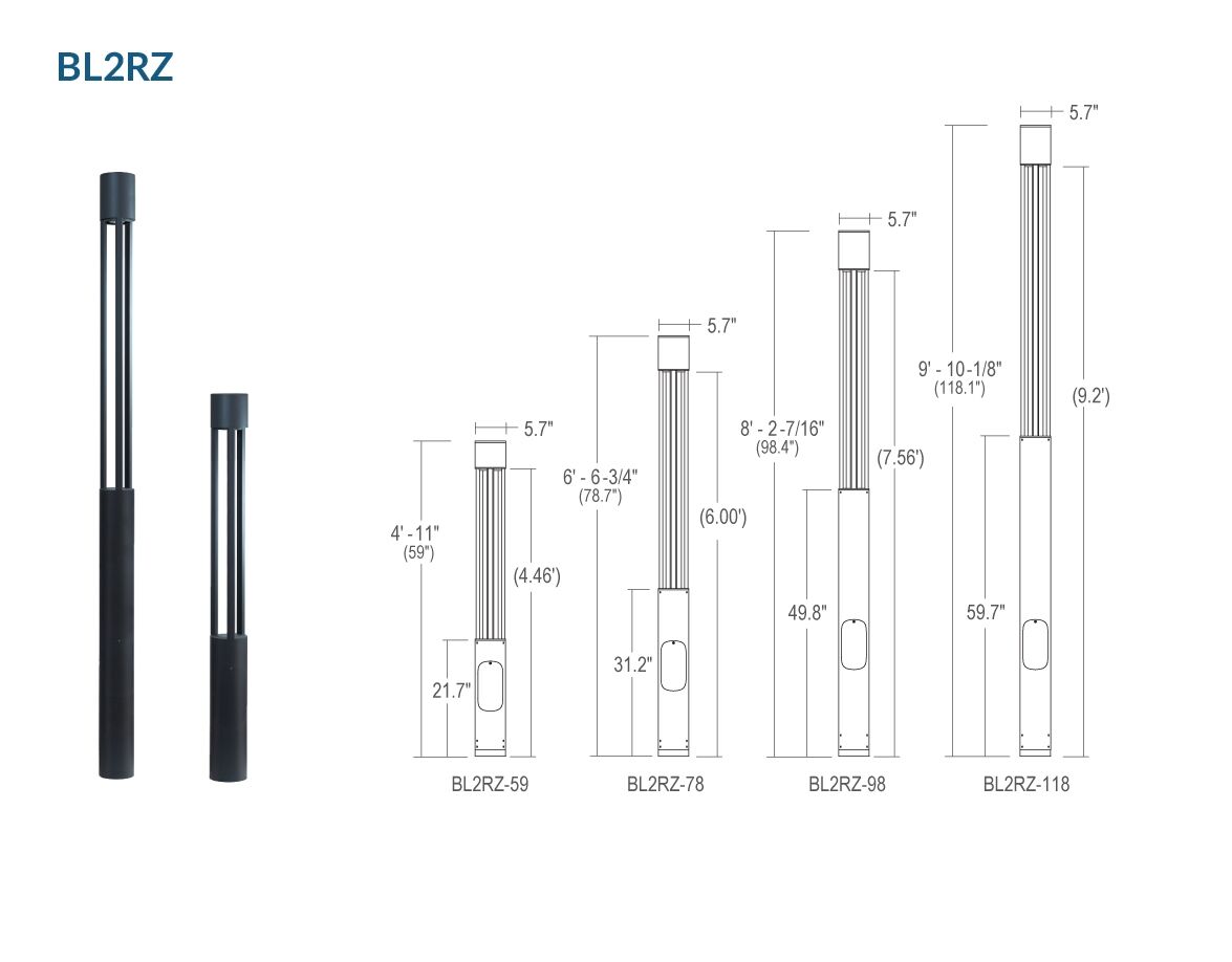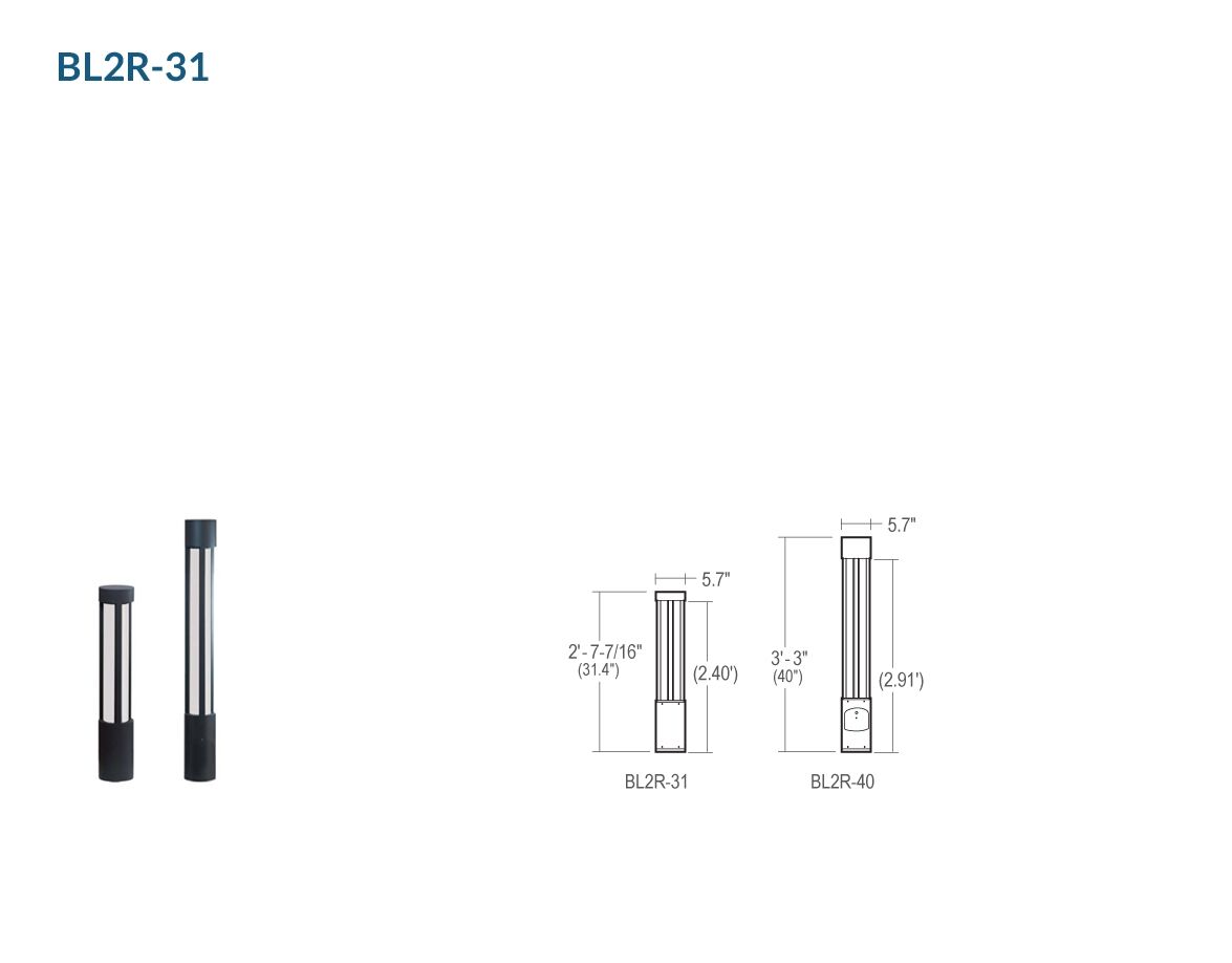 BL2R/BL2Q Series : LumenPole Bollards & Columns - 31", 40", 59", 78", 98", and 118" Height, 500LM - 3100LM (8W-53W)