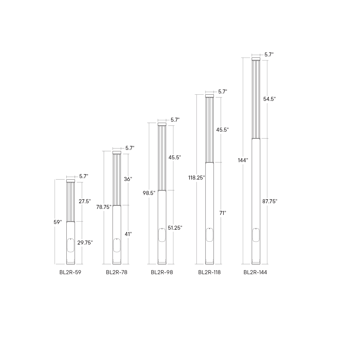 BL2R-RGBW-USA : LumenPole Round Bollard & Column 6" Frosted Lens RGBW - 31", 40", 59", 78", 98", 118" and 144" Height, 800LM - 2000LM (20W - 53W) BABA/US Made