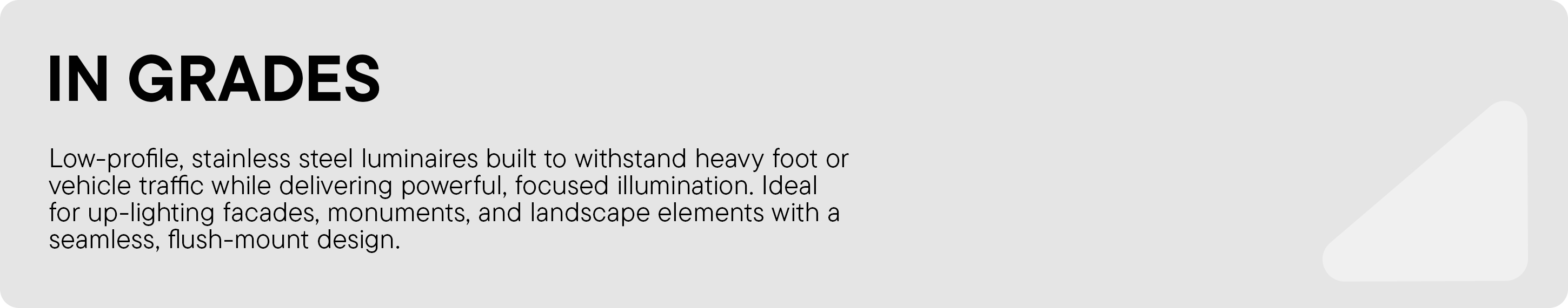 Surface mount luminaire ideal for indoor or outdoor applications in residential, commercial, or architectural installations. Can be used to direct and guide, as well as supply lighting for security.