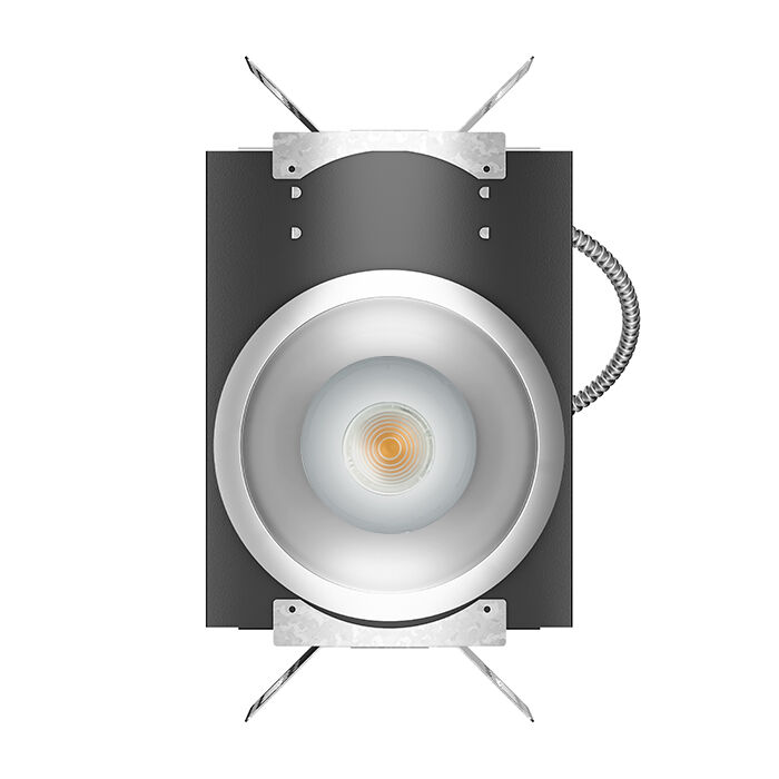Architectural/Commercial-grade recessed lensed LED downlight housing for medium to high ceilings in commercial and architectural spaces.