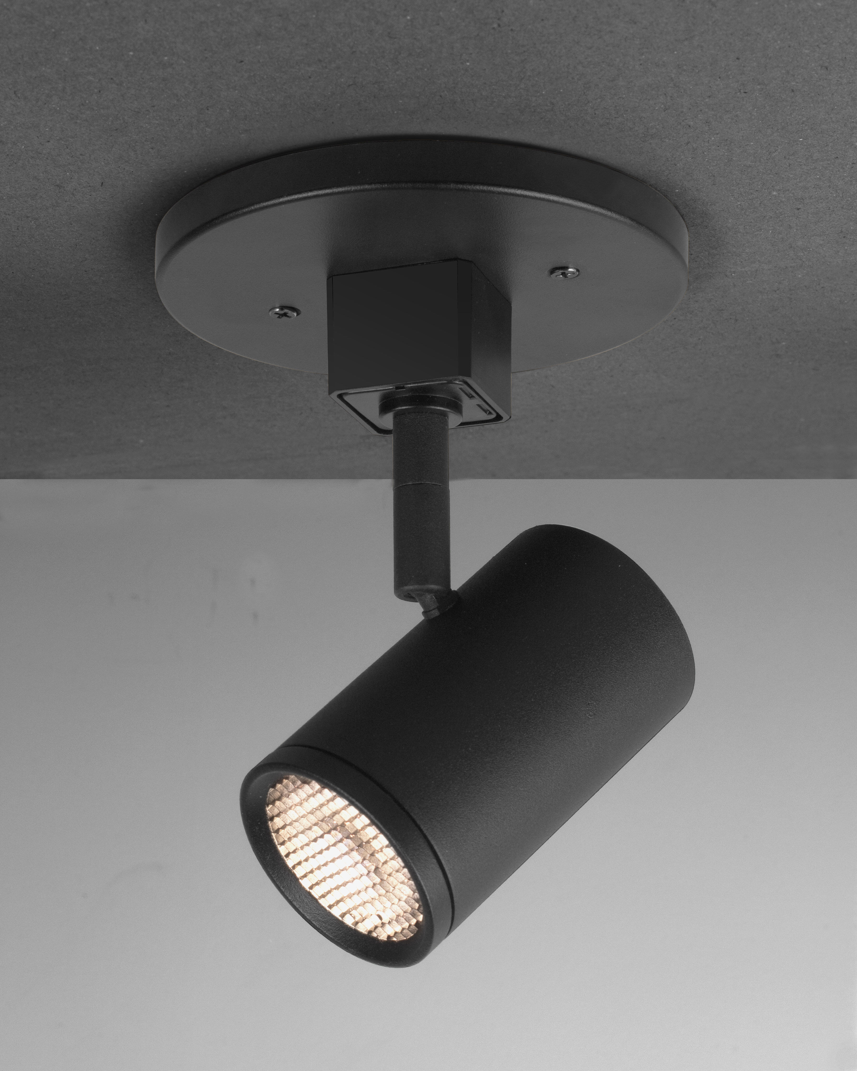 Architecturally styled Cylo Swivel Cylinder LED track head features a durable aluminum body, concealed heat sink, hidden wiring, and internal adjustment mechanism for a clean unobtrusive look. Its small size makes it ideal for retail, commercial and residential applications requiring stylish design and true MR16 performance