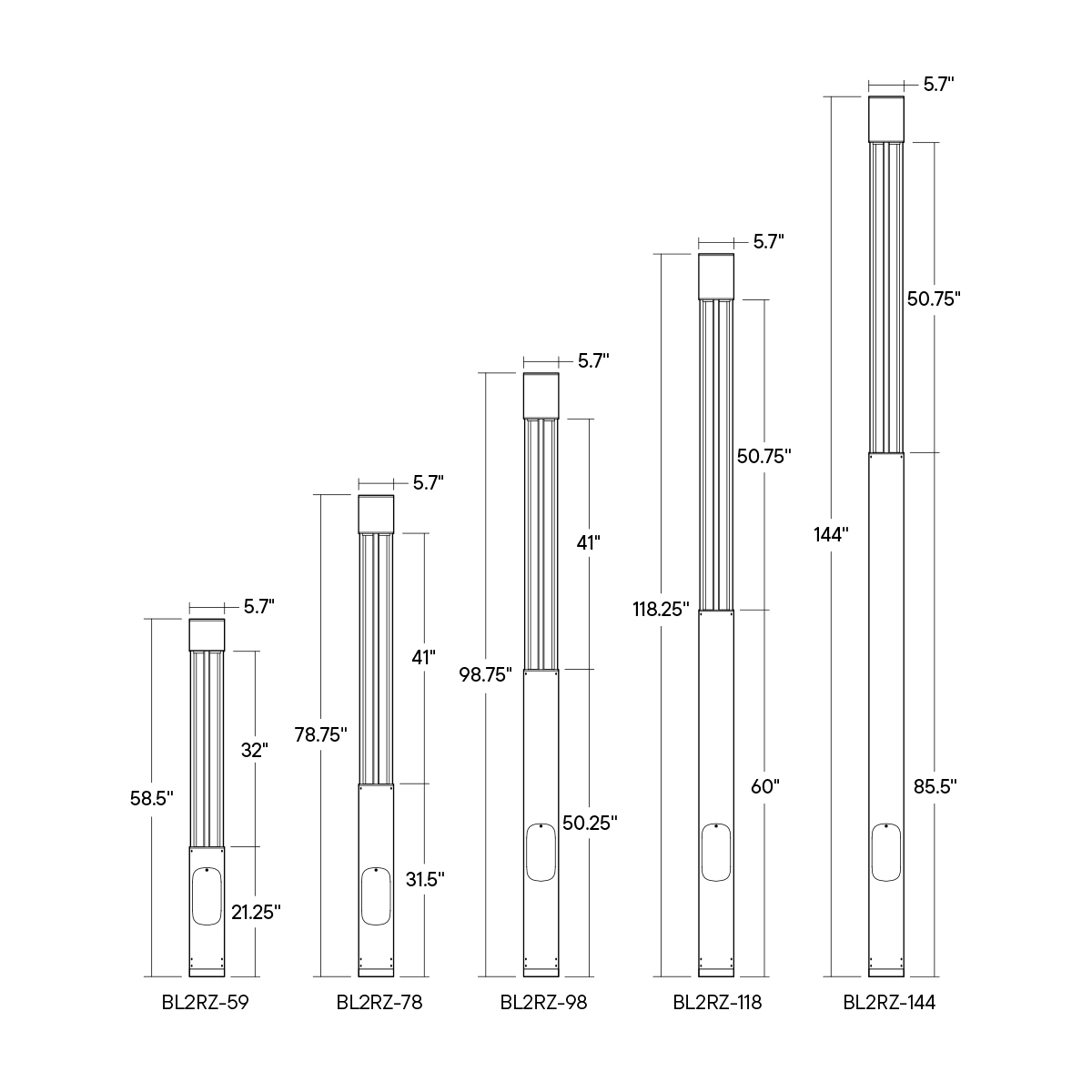BL2RZ : LumenPole Round Bollard & Column 6" Open Frame - 59", 78", 98", 118" and 144" Height, 1000LM - 2600LM (20W - 50W)